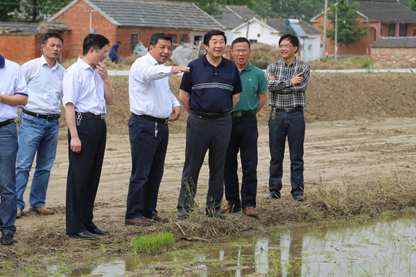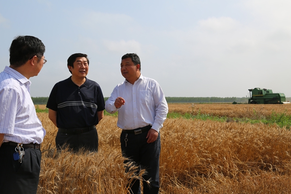 6月7日,蘇墾農(nóng)發(fā)股份公司總裁胡兆輝一行到寶應(yīng)湖檢查指導三夏工作,寶應(yīng)湖農(nóng)場黨委書記魏軍民、副總經(jīng)理夏永龍陪同檢查。