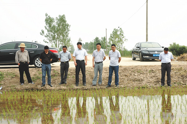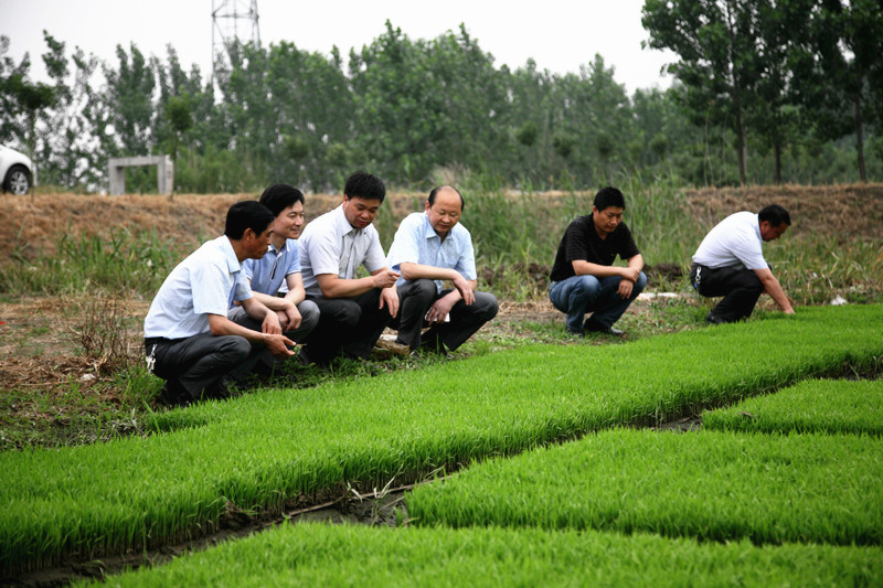 姜建友一行實(shí)地查看了旱整水栽栽插稻、農(nóng)科所擺栽田、大華種業(yè)濱淮分公司、七大隊(duì)在田水稻長勢(shì)等現(xiàn)場(chǎng)。在場(chǎng)期間,姜總裁詳細(xì)了解濱淮分公司三夏生產(chǎn)進(jìn)度,總經(jīng)理郭世平就大小麥?zhǔn)斋@、水稻栽插情況、保種情況等方面工作向姜建友作了匯報(bào)。