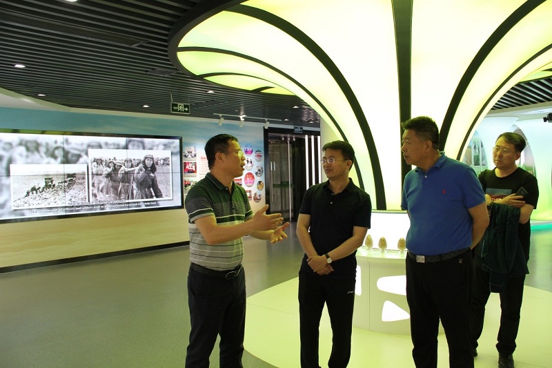 座談會前,李福罡、常東旭一行到蘇墾大廈19樓江蘇農(nóng)墾展示廳參觀了解農(nóng)墾創(chuàng)業(yè)發(fā)展史和農(nóng)發(fā)主要產(chǎn)品展示。