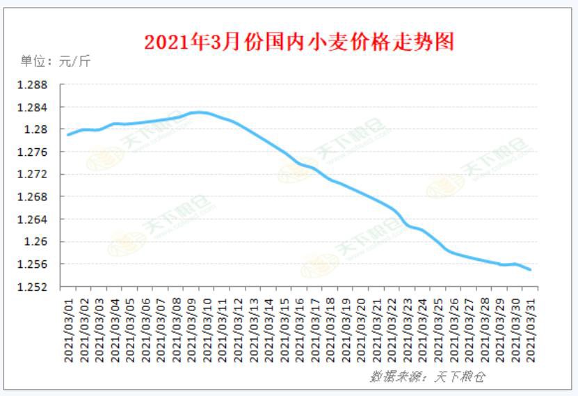 1、國(guó)內(nèi)小麥2021年3 月行情