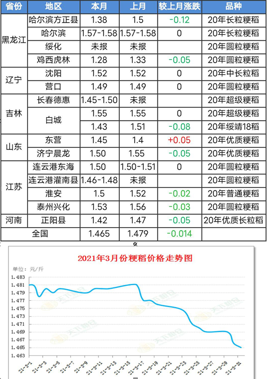 2、國(guó)內(nèi)稻谷(粳稻)2021 年3 月行情