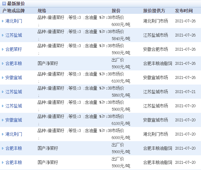1、油菜籽價(jià)格行情