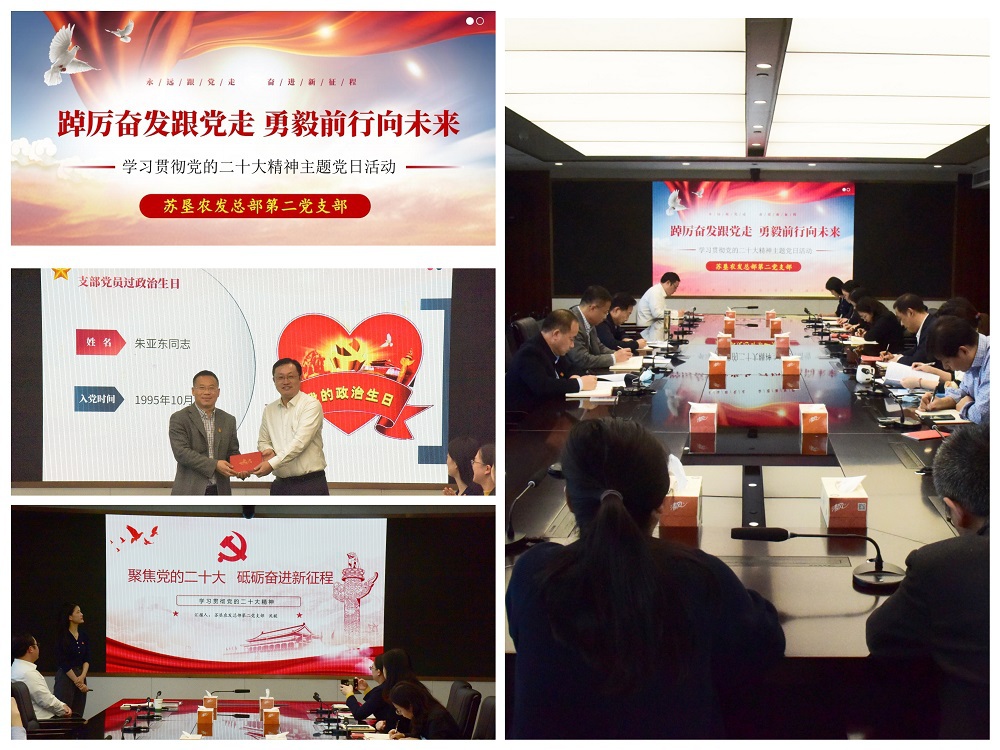 為深入學習貫徹黨的二十大精神,讓大會精神帶著熱氣深入到每個黨員心中,10月25日,蘇墾農發(fā)總部第二黨支部開展“踔厲奮發(fā)跟黨走 勇毅前行向未來”主題黨日活動。