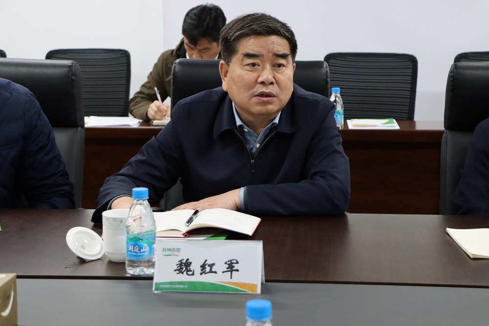 魏紅軍在調(diào)研座談時,充分肯定了蘇州蘇墾成立以來取得的成效。他表示在經(jīng)濟最發(fā)達地區(qū)推行蘇墾模式,展示農(nóng)業(yè)現(xiàn)代化水平,樹立一面旗幟,非常不容易。他強調(diào)要不斷探索實踐,不斷總結(jié)提高,豐富“蘇墾模式”的內(nèi)涵;要加強宣傳,積極與地方政府溝通,講好蘇州蘇墾故事,爭取更多支持,贏得持續(xù)健康發(fā)展。