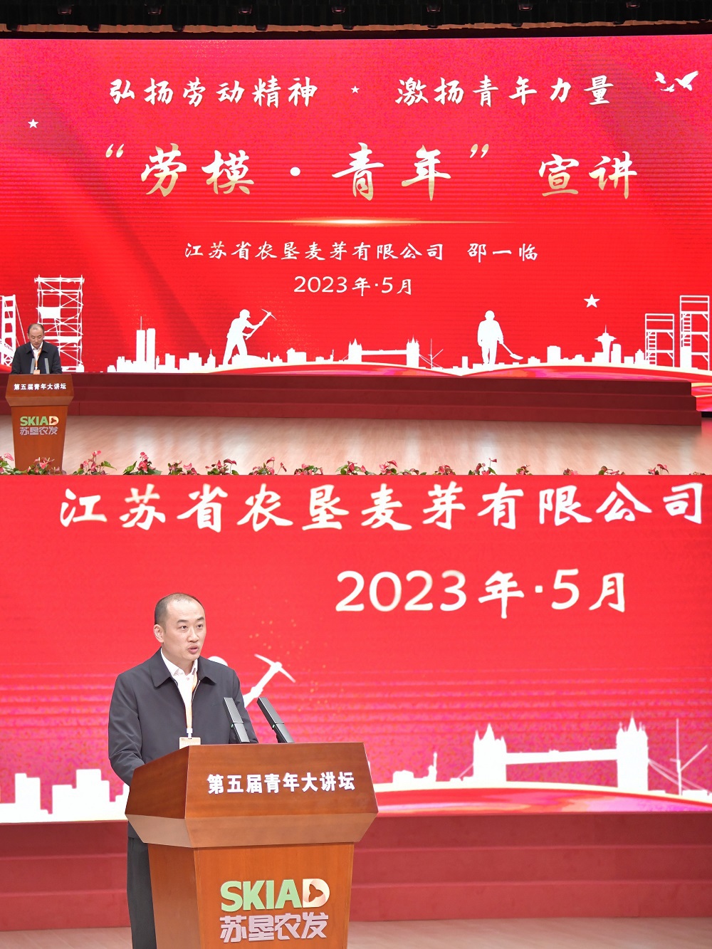 活動期間,還開展了以“弘揚勞模精神 激揚青年力量”為主題的青年勞模宣講。江蘇農(nóng)墾第五屆勞動模范、蘇墾麥芽黨委委員、副總經(jīng)理、工會主席邵一臨,是一名80后的青年勞模,他以“功崇惟志 業(yè)廣惟勤”為題給青年們進(jìn)行了宣講,他用自己的親身經(jīng)歷、成長故事、奮斗歷程,詮釋了勞模精神、勞動精神和奉獻(xiàn)精神,激勵著在場的每位青年,大家紛紛表示,要以勞模先進(jìn)為榜樣,學(xué)習(xí)他們愛崗敬業(yè)、艱苦奮斗、甘于奉獻(xiàn)、敢于擔(dān)當(dāng)、勇于創(chuàng)新的精神,以更加昂揚的斗志、更加飽滿的熱情投入到自己的工作和生活中去。