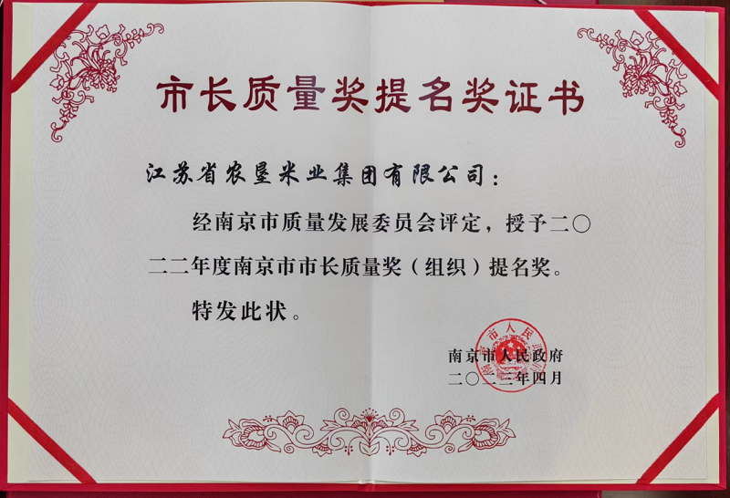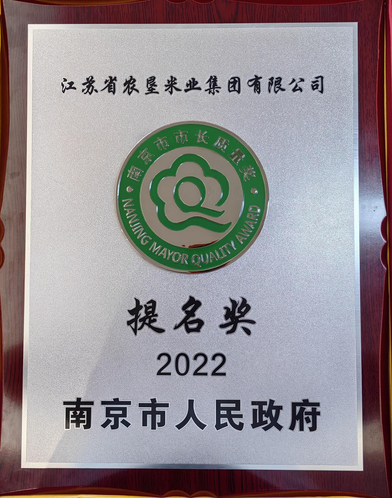 6月2日,2022年度南京市市長質(zhì)量獎名單正式揭曉,蘇墾米業(yè)榮獲2022年度南京市市長質(zhì)量獎(組織)提名獎。
