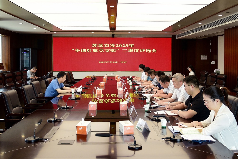 7月24日,蘇墾農(nóng)發(fā)召開2023年“爭創(chuàng)紅旗黨支部”第二季度評選會。公司黨委副書記、工會主席王進強主持會議并講話。