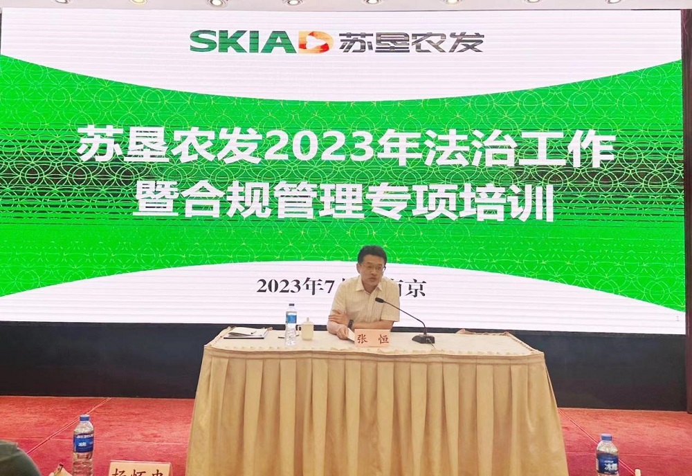 •        為進一步深化推進公司法治建設,提升公司總部及下屬各單位法治及合規(guī)管理水平,7月27日至28日,蘇墾農(nóng)發(fā)在南京舉辦法治工作暨合規(guī)管理專項培訓,公司黨委委員、副總裁、董事會秘書張恒出席會議并講話。