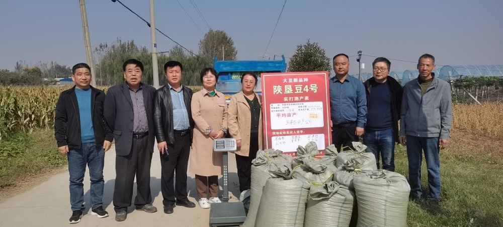 專家組嚴(yán)格按照《全國油料高產(chǎn)創(chuàng)建測產(chǎn)驗(yàn)收辦法(試行)》中的“大豆測產(chǎn)辦法”,隨機(jī)選點(diǎn)進(jìn)行實(shí)測,扣除雜質(zhì),折合標(biāo)準(zhǔn)水分,“陜墾豆4號”最終實(shí)收畝產(chǎn)達(dá)到343.49公斤,刷新陜西省夏播大豆單產(chǎn)新紀(jì)錄。