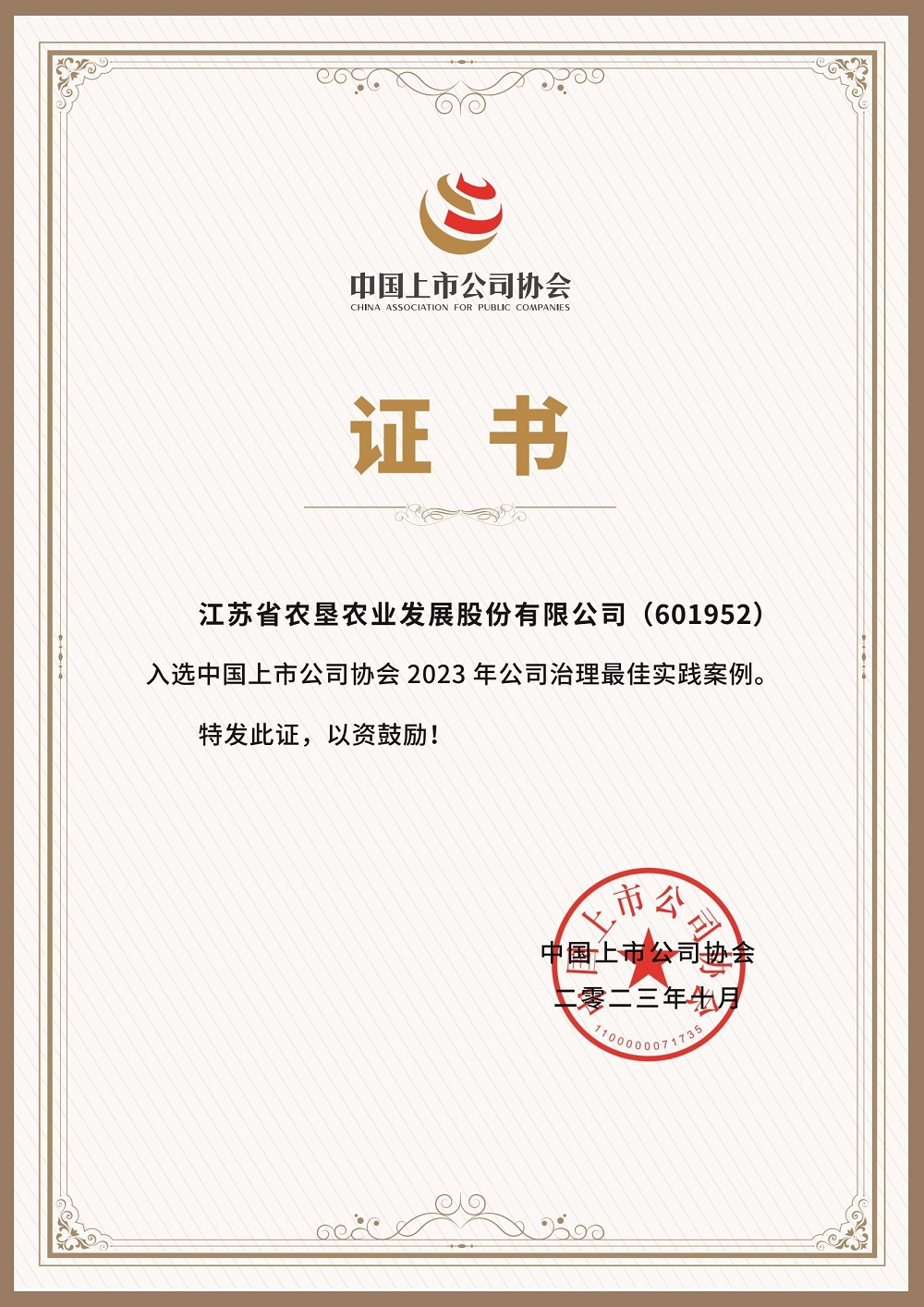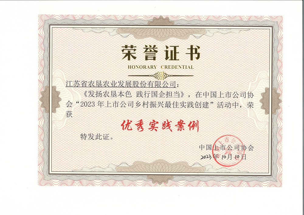 今年7月,中國上市公司協(xié)會分別開展了“2023年公司治理最佳實踐案例評選活動”和“2023年上市公司鄉(xiāng)村振興最佳實踐創(chuàng)建案例評選活動”,由相關(guān)領(lǐng)域?qū)<覍W(xué)者組成專家評審委員會對相關(guān)單位選送的實踐案例開展嚴(yán)格遴選及多輪評審,最終評選出入選公司治理最佳實踐案例的上市公司100家,入選上市公司鄉(xiāng)村振興優(yōu)秀實踐案例的上市公司109家,兩項評選活動蘇墾農(nóng)發(fā)均成功入選。