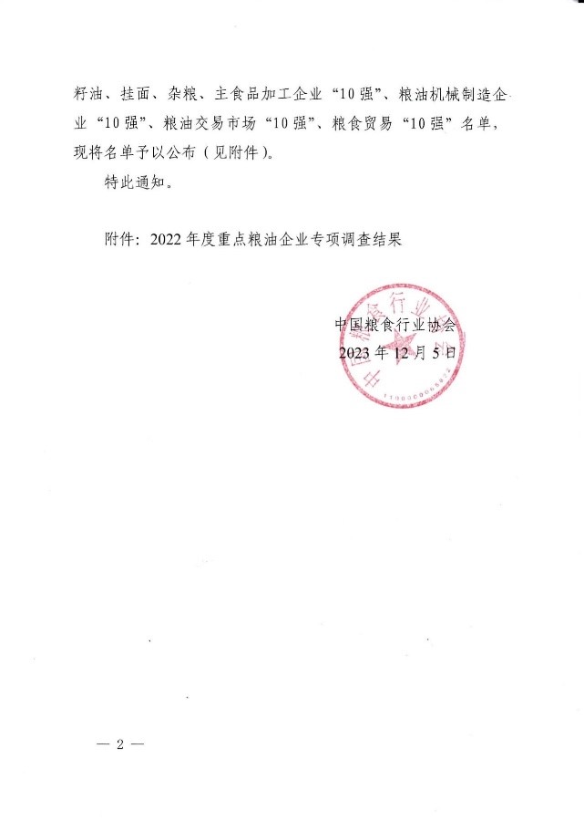近日,我國2022年度大米、小麥粉、食用油加工企業(yè)“50強”名單,菜籽油、棕櫚油、花生油、玉米油、稻米油、芝麻油、油茶籽油、葵花籽油、亞麻籽油、掛面、雜糧、主食品加工企業(yè)“10強”、糧油機械制造企業(yè)“10強”、糧油交易市場“10強”、糧食貿易“10強”名單確定出爐。