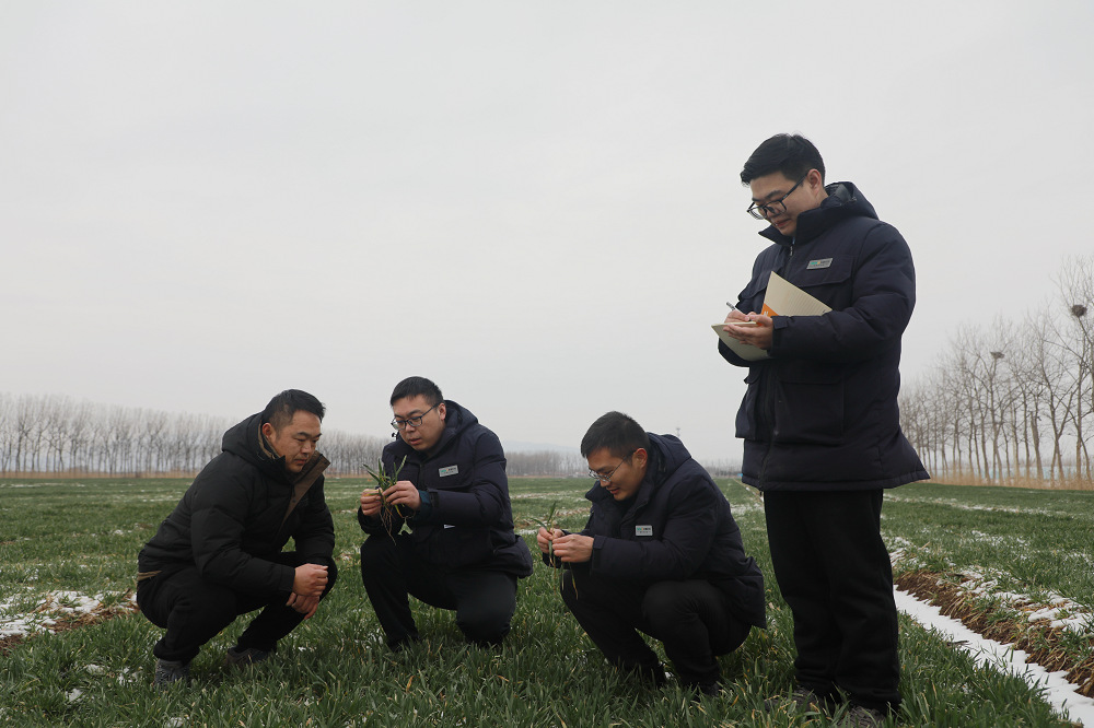田間勤“把脈”、春管搶主動。在西洋生產(chǎn)區(qū),農(nóng)業(yè)中心技術(shù)人員和大隊隊長正在踏田查苗,通過苗情普查,開“良方”、施“良策”,實現(xiàn)分類精確管理。從目前長勢來看,東辛整體苗情基礎(chǔ)較好,一類苗占比達91.66%,后期加強小麥田間生產(chǎn)管理,夏糧有望再獲豐收?!叭ツ昵锓N期間,東辛土壤墑情適宜,小麥播種基礎(chǔ)好、播種質(zhì)量高,長勢總體良好。但去年12月中旬以來多次寒潮降溫天氣導(dǎo)致部分麥田遭遇不同程度凍害、漬害,同時春季氣候不確定性大,‘倒春寒’、干旱等威脅依然存在?!鞭r(nóng)業(yè)中心技術(shù)人員說道,今年小麥春季田間管理將繼續(xù)堅持“防凍害、防漬害、早除草、促升級”策略,因地因苗施策,做好分類管理,構(gòu)建麥田合理群體結(jié)構(gòu),搭好夏糧豐產(chǎn)架子。