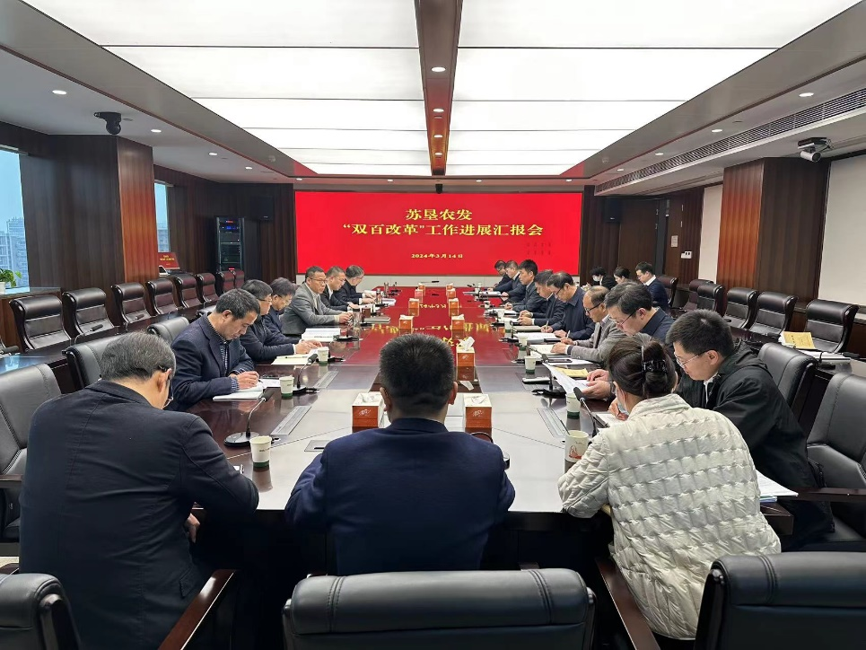 3月14日,蘇墾農(nóng)發(fā)召開“雙百改革”工作進(jìn)展匯報(bào)會(huì),集團(tuán)總經(jīng)濟(jì)師、蘇墾農(nóng)發(fā)黨委書記、董事長(zhǎng)朱亞?wèn)|主持會(huì)議并講話。大華種業(yè)、蘇墾米業(yè)、蘇墾農(nóng)服、蘇墾農(nóng)科院、總部各部門分別匯報(bào)“雙百改革”任務(wù)進(jìn)展情況。
