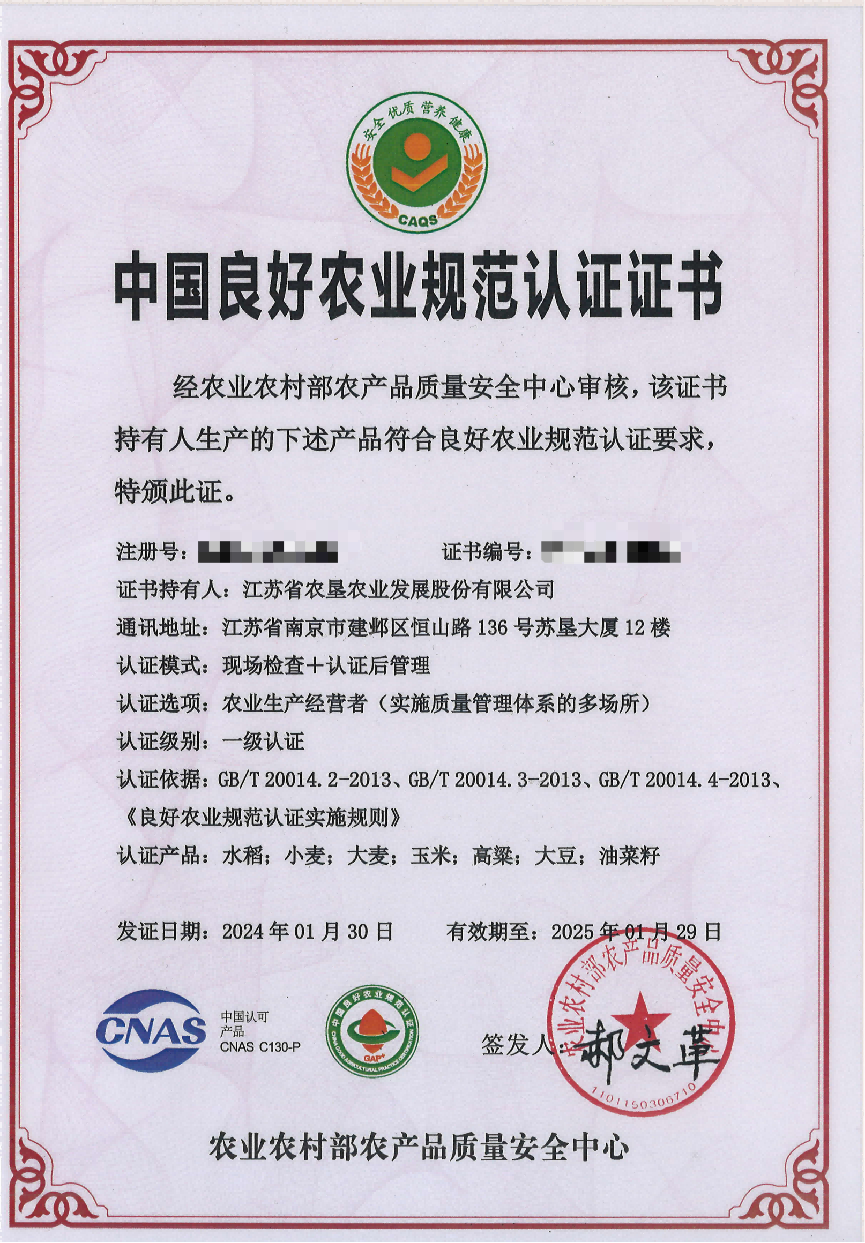 近日,蘇墾農(nóng)發(fā)20個(gè)生產(chǎn)基地的水稻、小麥、大麥、玉米、大豆、油菜、高粱等7種作物通過全國(guó)良好農(nóng)業(yè)規(guī)范(GAP)一級(jí)認(rèn)證,是全國(guó)單體規(guī)模最大的一級(jí)認(rèn)證單位。
