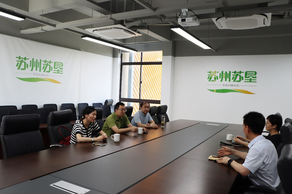 7月3日,江蘇省糧油質(zhì)量監(jiān)測中心副主任、高級工程師黃偉一行到蘇州蘇墾考察指導(dǎo)工作。