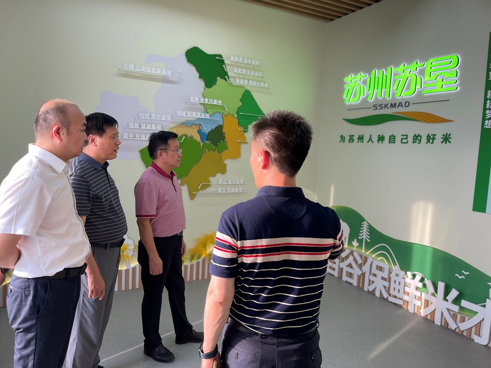 蘇州蘇墾工作人員介紹了蘇州蘇墾成立以來(lái)的發(fā)展情況、基地布局情況、水稻種植情況和“蘇墾15度鮮”大米品牌打造情況。李德和夏春勝詳細(xì)詢問(wèn)了“蘇墾15度鮮”品牌內(nèi)涵、品牌定位、產(chǎn)品品質(zhì)、市場(chǎng)銷售等情況,對(duì)蘇州蘇墾在經(jīng)濟(jì)最發(fā)達(dá)地區(qū)“蘇墾模式”的推廣取得的成績(jī)給予了充分肯定。李德希望蘇州蘇墾充分發(fā)揮江南魚米之鄉(xiāng)、陽(yáng)澄湖和太湖等地域優(yōu)勢(shì),充分挖掘蘇州文化內(nèi)涵,融合開(kāi)展“水韻蘇米”品牌宣傳,為“水韻蘇米”品牌建設(shè)貢獻(xiàn)力量。