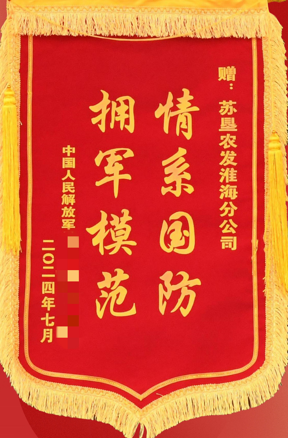 昔日屯墾戍邊地,今朝用情暖軍心。7月22日下午,蘇墾農(nóng)發(fā)淮海分公司總經(jīng)理仰海洲收到了一面來自中國人民解放軍陸軍某部、題為“情系國防 擁軍模范”的特殊錦旗。在贈旗儀式上,該部負(fù)責(zé)人深情地說:“這次駐訓(xùn)的圓滿完成,離不開貴單位的大力支持,你們的付出為我們解決了后顧之憂,讓我們能夠全身心投入到訓(xùn)練和任務(wù)中,這面錦旗不僅代表著我們的感謝,更是軍民深厚魚水情的生動見證。”