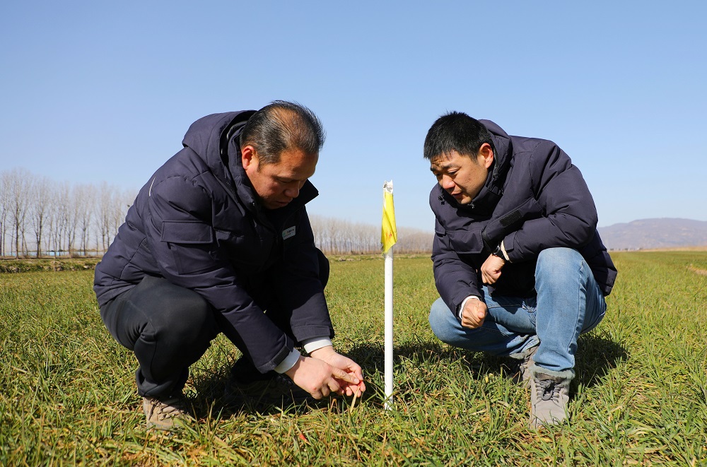 在21大隊早茬小麥田,農(nóng)技人員深入田間地頭,查看土壤墑情和麥苗長勢,仔細清點當前小麥葉齡、群體莖蘗數(shù)等,并做好標記。生產(chǎn)區(qū)副主任龍厚元說:“西洋生產(chǎn)區(qū)種植小麥15000余畝,設立定點跟蹤調查點位21個。通過定點跟蹤調查,可以精準掌握小麥每個生育時期的群體莖蘗動態(tài)和生長過程中發(fā)生的病蟲害,便于及時制定田間管理措施,為夏糧增產(chǎn)豐收打下堅實基礎。”