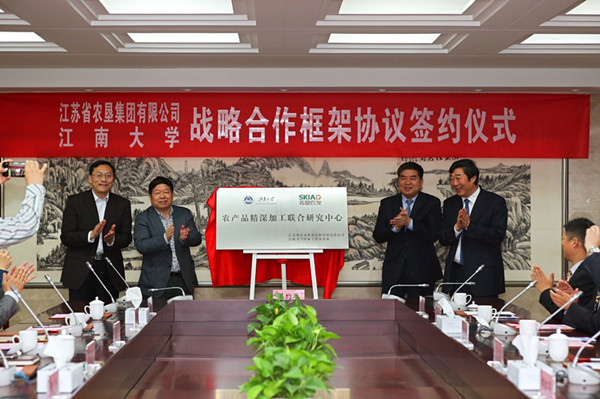 蘇墾農(nóng)發(fā)股份公司與江南大學(xué)國家工程實(shí)驗(yàn)室聚焦國際“大健康、大食品、大產(chǎn)業(yè)”前沿技術(shù),合作共建農(nóng)產(chǎn)品精深加工聯(lián)合研究中心。江蘇農(nóng)墾與江南大學(xué)有著長期而深厚的合作基礎(chǔ),雙方建立全面戰(zhàn)略合作關(guān)系、共建農(nóng)產(chǎn)品精深加工聯(lián)合研究中心,是雙方發(fā)揮各自優(yōu)勢、推進(jìn)“產(chǎn)學(xué)研用”深度合作的重要舉措。研究中心圍繞優(yōu)勢互補(bǔ)、強(qiáng)強(qiáng)聯(lián)合,深入開展協(xié)同創(chuàng)新,共同打造全省農(nóng)產(chǎn)品精深加工、農(nóng)產(chǎn)品質(zhì)量安全、農(nóng)業(yè)物聯(lián)網(wǎng)應(yīng)用的示范基地和校企緊密合作的新典范。雙方以此為起點(diǎn),將戰(zhàn)略合作向更深領(lǐng)域、更高層次推進(jìn),深度整合、共享科技資源和產(chǎn)業(yè)資源,共同為全省乃至全國農(nóng)業(yè)現(xiàn)代化建設(shè)作出更大貢獻(xiàn)。